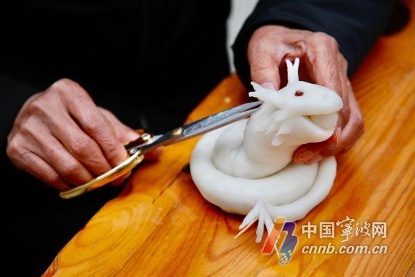 (là)年糕制作技艺非遗馆内,83岁的村民王国富迎来了一年中最忙的时刻。连日来,他加班加点,赶制充满年味的十二生肖造型年糕。