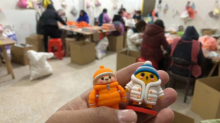 第一批涌入东北的南方人,收获了“南方小土豆”的专属称呼。广西“小砂糖橘”、四川“小熊猫”、天津“小麻花”……全国网友加入“起名大军”之时,拥有敏锐市场嗅觉的义乌人,已经看到了热点背后的商机。最近不少景点出现的以“小土豆”“砂糖橘”为设计原型的卡通形象摆件,就出自义乌人之手。