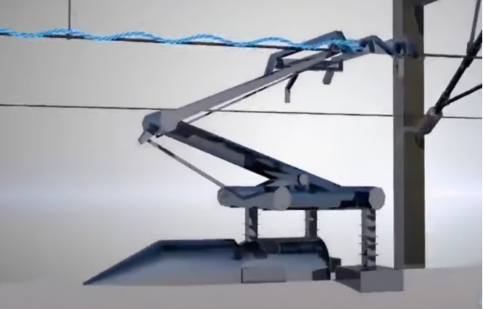 高铁车厢上方的受电弓,图片截自纪录片《中国高铁》