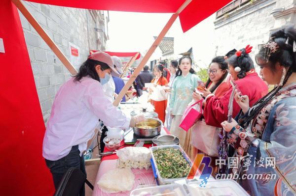 同时,龙年非遗集市正式启动。“龙鳞”(春卷)、“龙眼”(馄饨)、“龙须”(面条)、“龙蛋”(包子)、露天米饭……活动现场,传统“龙食”热销,受到广大观众青睐。