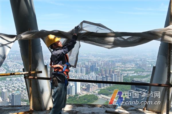 5月15日上午,记者登上宁波中心大厦的顶层,在城市建筑之巅,用镜头记录让城市向空中生长的建设者们,他们用勤劳的汗水与踏实的技能创造着新的高度。