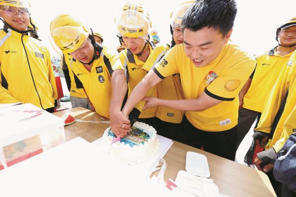 昨日,江北区委社会工作部(江北区委两新工委)、外滩街道等单位联合开展“甬爱E家”骑士慰问活动,为他们送去“骑士工具包”和清凉用品。(甬派客户端宁波日报陈结生 张孝 陈栋 摄)