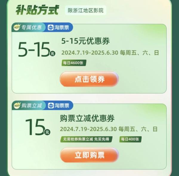 用户可登录淘票票、潮新闻、Z视介APP等平台享受以上优惠,先到先得,抢完为止。