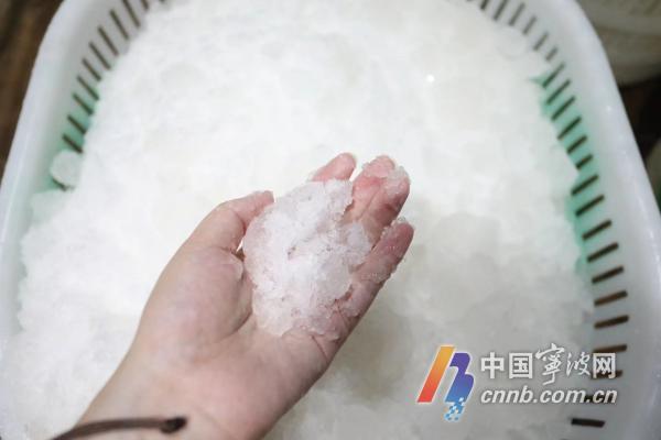 柴春华表示,普通冰和自来水冰的主要差别是,普通冰除了自来水还参杂了姚江净化水,颜值虽然不如自来水冰,但是化得慢,更受消费者青睐。