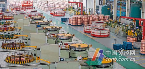 这是宁波博威合金材料股份有限公司新材料三期工厂的景象。这里虽然只有200余名工人,但相比老产线,这里的生产效率提升了25%,产品品质提升了15%。