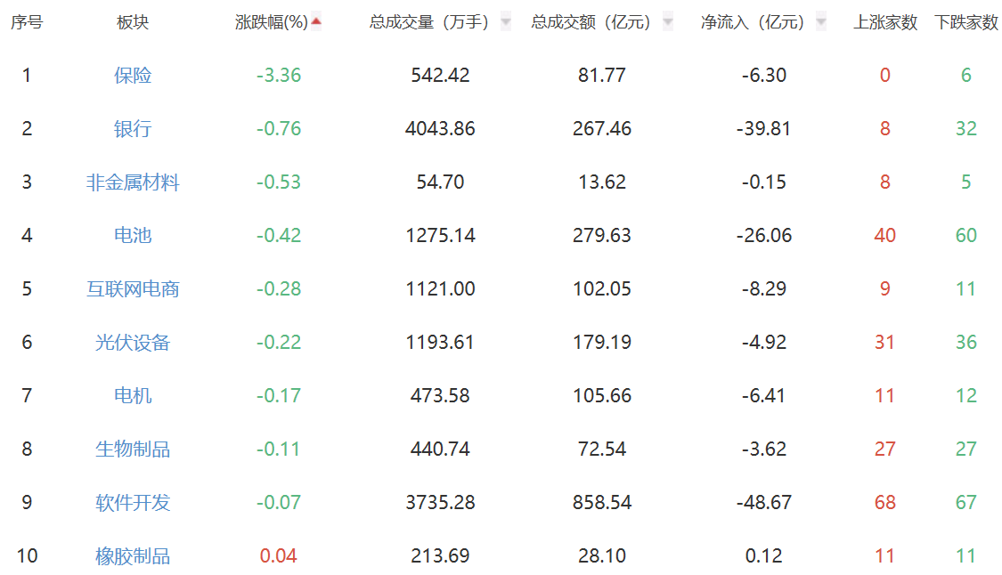 A股市场板块涨跌幅排行