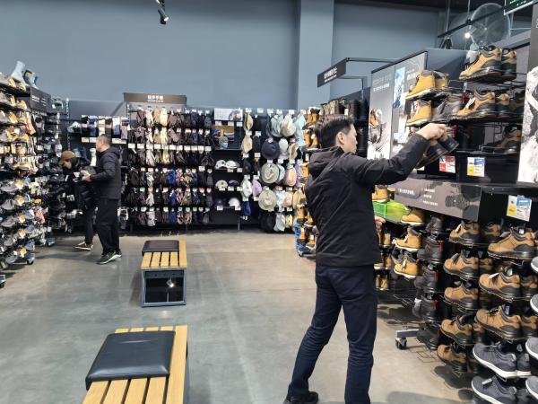 顾客在挑选登山鞋和跑鞋