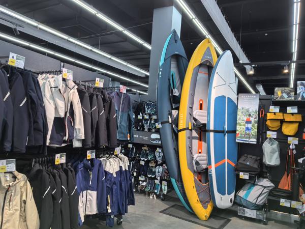 从迪卡侬潘火店的布局及品牌、门类越分越细,可以看到体育消费专业化的趋势。店员说,受宁波网球公开赛的带动,网球、羽毛球等球拍类运动产品销量不错,其配套产品也愈发丰富。比如售价200多元的便携式羽毛球网,放在地上就能使用,很受客人欢迎。