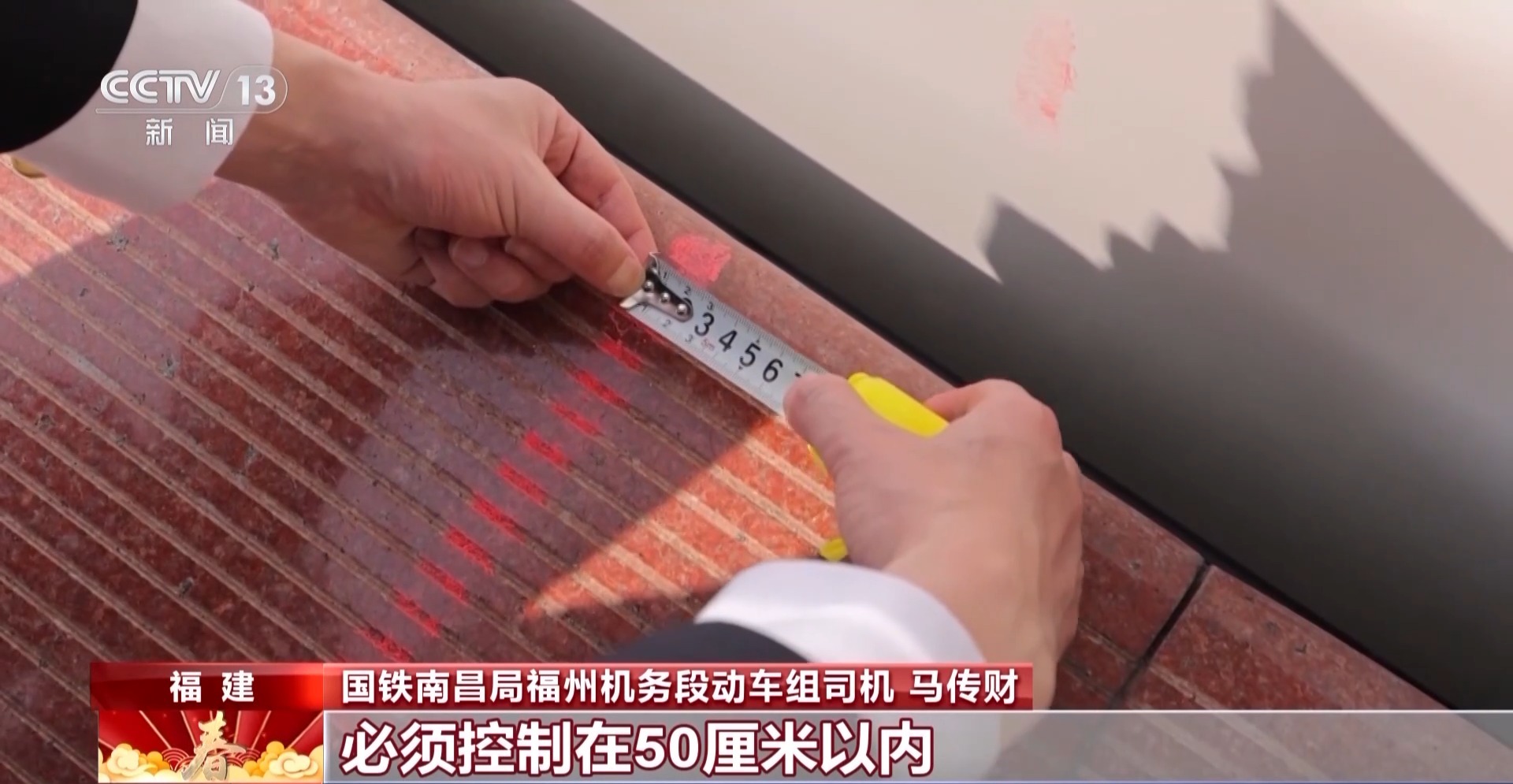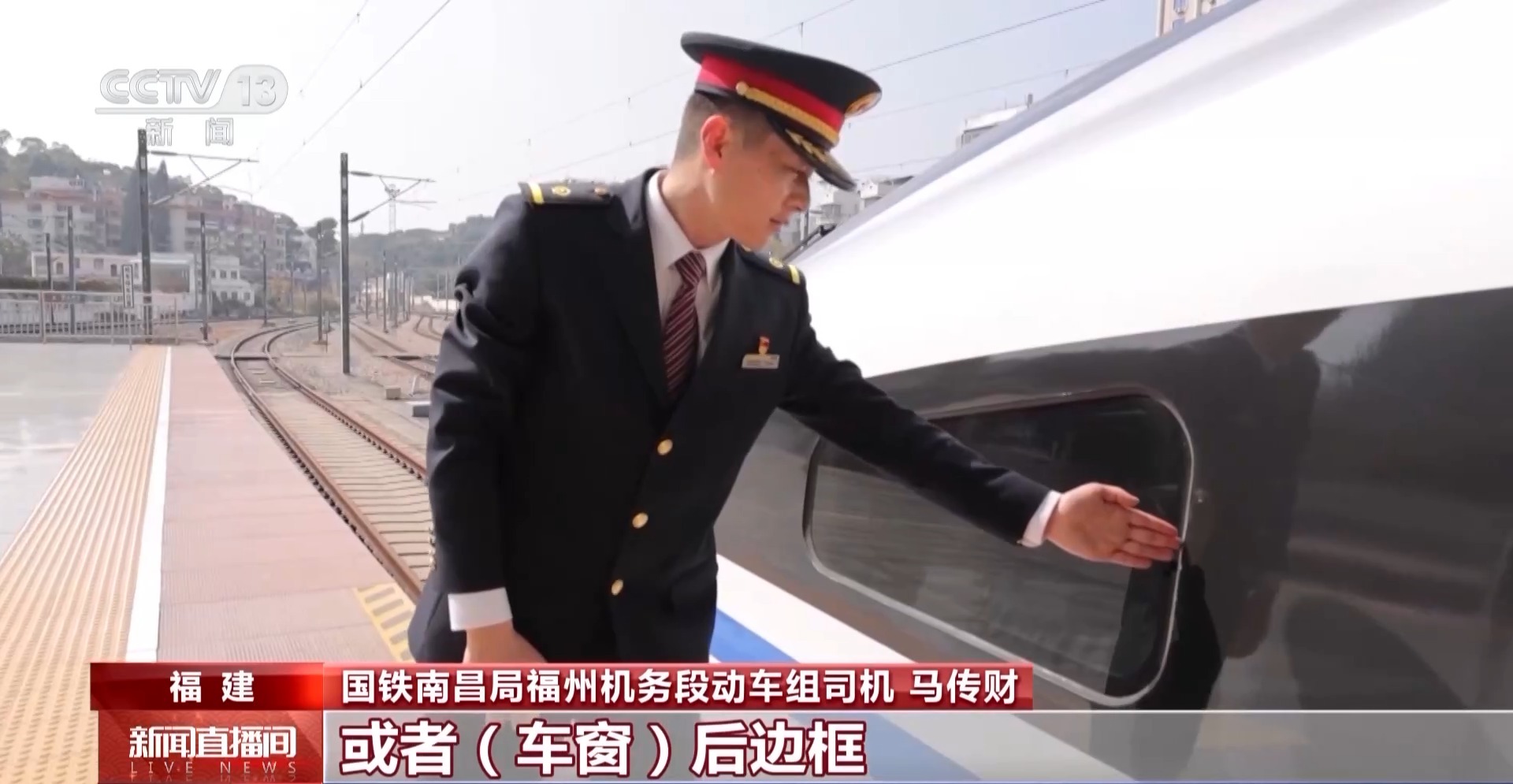 国铁南昌局福州机务段动车组司机 马传财:我们在精准对标时,停车标和侧边窗户的误差必须控制在50cm范围内,有的车型对车窗正中,有的车型是对车窗前窗边框或者后窗边框,这就需要我们日常反复练习,才能平稳精准对标。