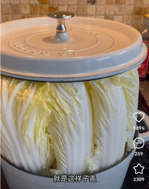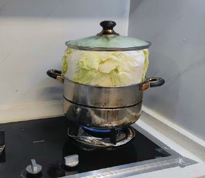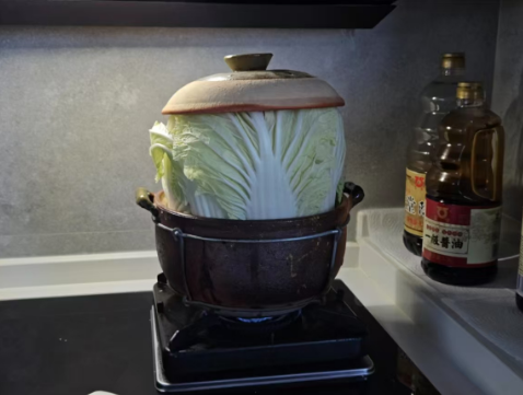 白菜帮子插在锅边