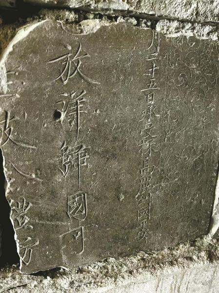2024年寒冬的一个午后,平日冷清的海曙区集士港镇丰惠庙内,一群宁波文保工作者聚拢在一面围墙旁,将四块砌于墙体中的残碑,小心翼翼地剥离开来。当泥土和石灰扫去,嵌在墙体中的浅紫灰色“梅园石”逐渐显露出来……