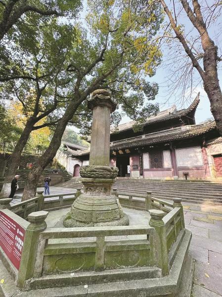 保国寺门口有座唐代经幢,建于唐开成四年(839年),原为慈城普济寺旧物,1984年移置于此。保国寺古建筑博物馆为何会去研究梅园石?也与这座经幢有关。