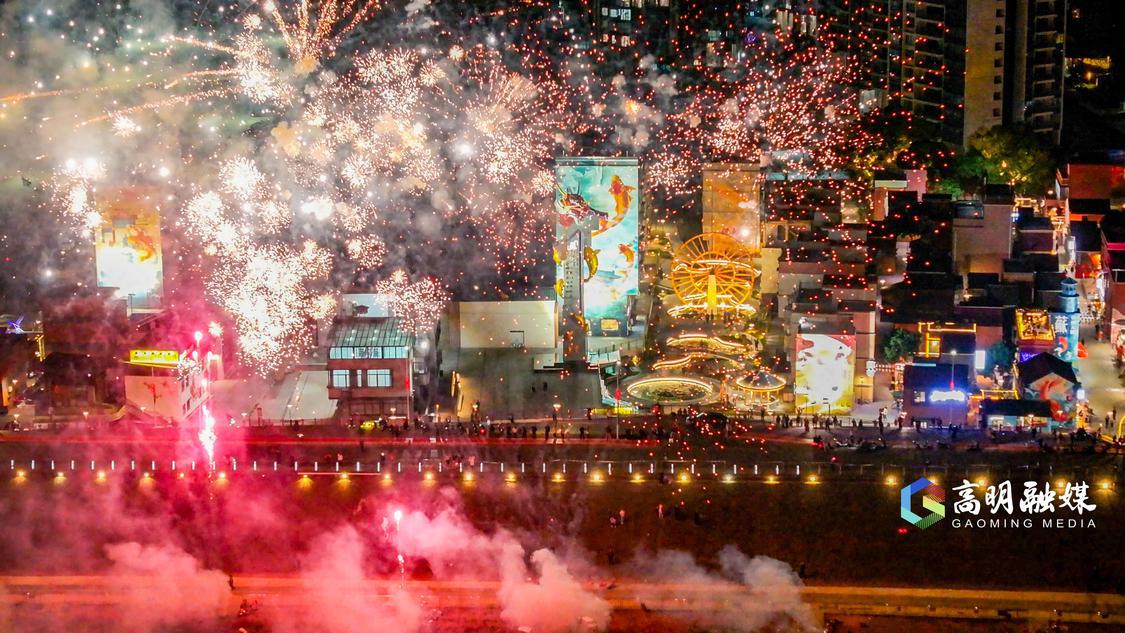 除夕当晚,蘇村锦鲤文化街区上演烟花秀。洪海摄