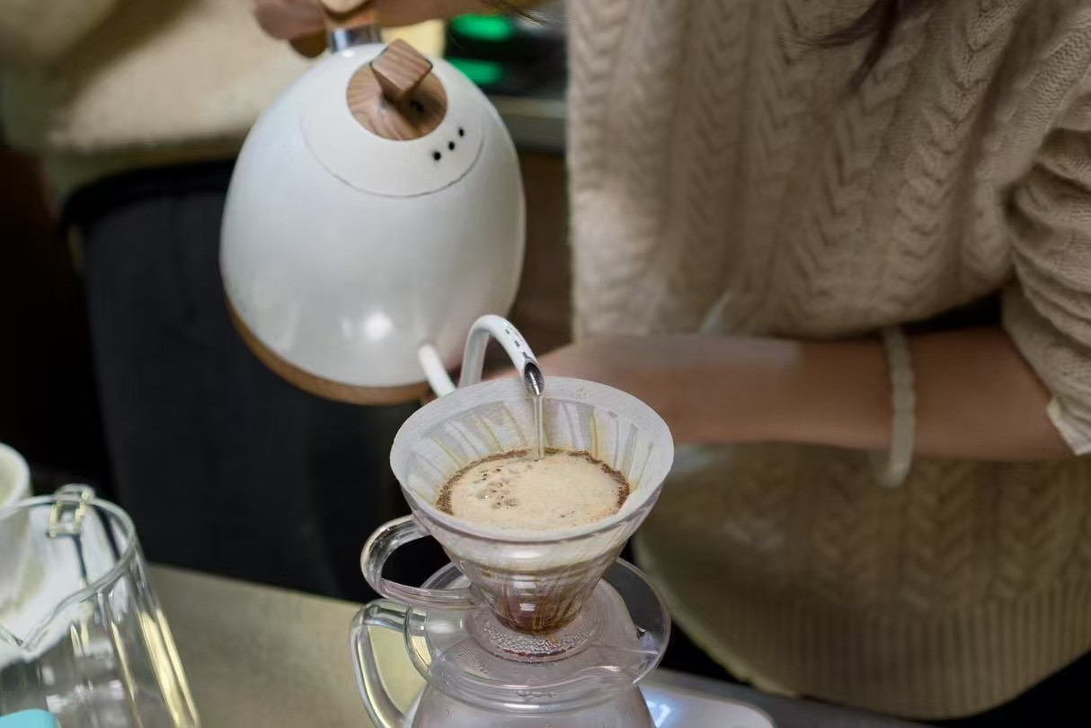 江女士正在冲制手冲咖啡 来源:受访者