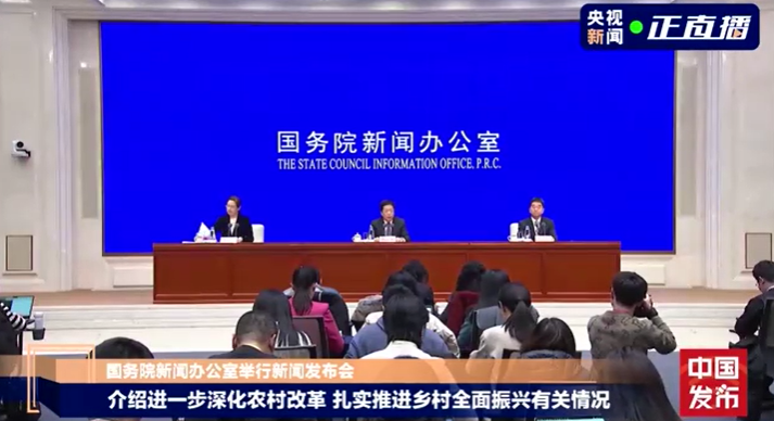 今天下午,国务院新闻办公室举行发布会,介绍进一步深化农村改革、扎实推进乡村全面振兴的有关情况。