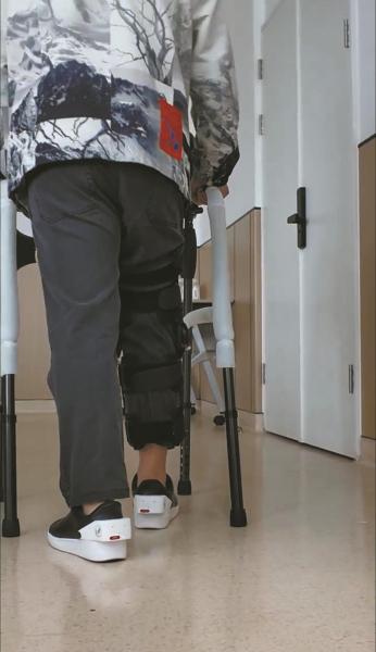 经过几年的研发,中心联合企业开发出一套下肢康复运动训练系统。“这套系统既可以在医院康复,也可以在家康复。医生通过系统实时监测患者的步态康复情况,并为他们设计个性化的康复计划。”彭兆祥解释,这套系统的关键在于一双AI加持下的“黑科技”运动鞋。