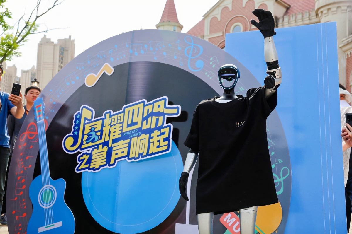 巡演现场歌声悠扬,游园活动人气正旺。在滨海嘉年华活动现场,特色农产、非遗美食琳琅满目,令人食指大动。而当头戴草帽,身穿短袖的机器人闪亮登场时,它瞬间成为现场群众争相拍摄留念的对象,似乎是察觉到了围观群众的热情,机器人煞有介事地朝大家挥了挥手,引起了现场阵阵欢呼。