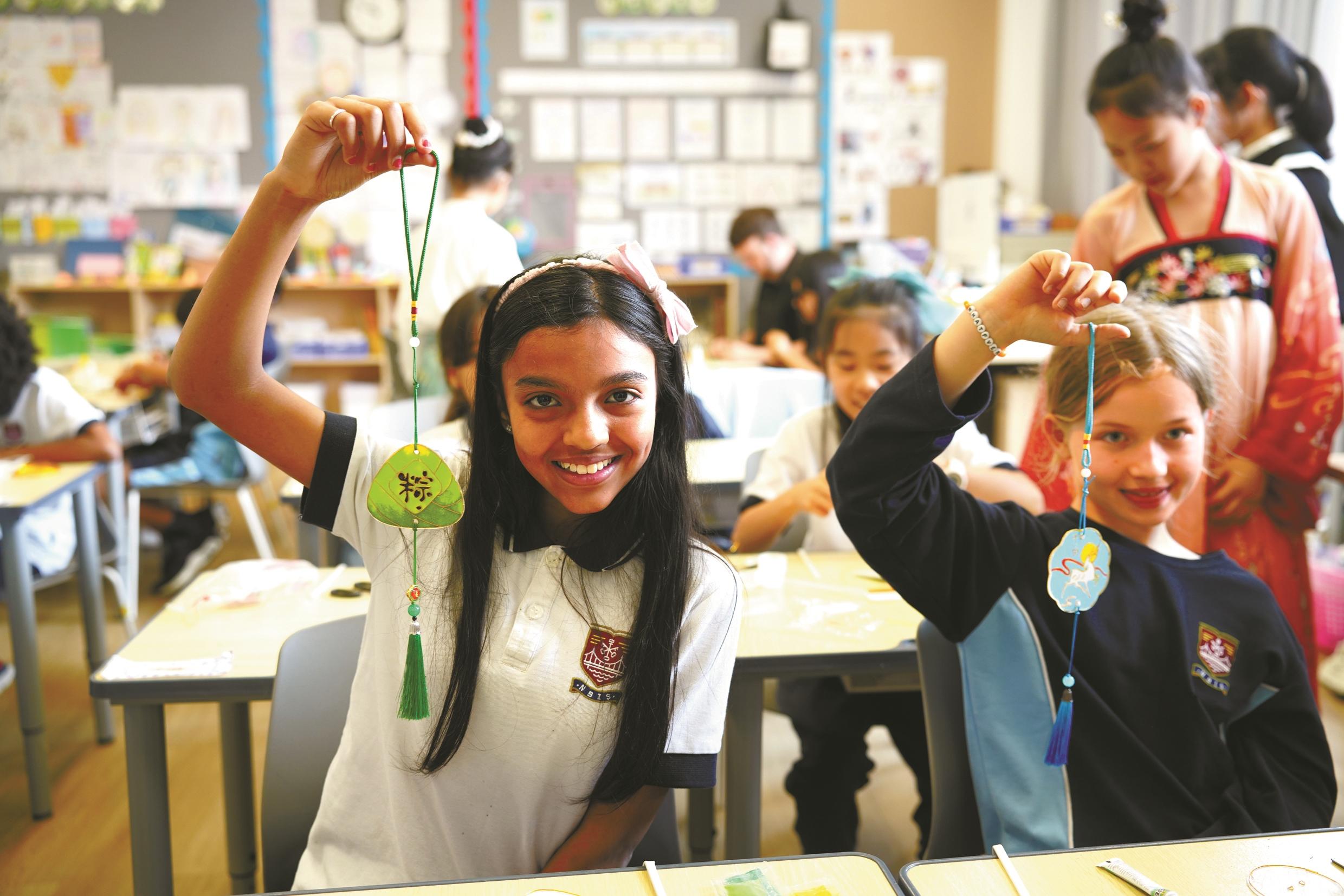 端午节前夕,浙江宁波英伦外籍人员子女学校携手海曙区石碶街道冯家小学开展“文化交织,非遗无界”中外学生手工互动活动。当天,冯家小学20余名师生带着浙东灰雕、掐丝珐琅、拼布香囊等传统非遗技艺,与来自全球多个国家的100余名师生开展面对面、手把手教学交流。(甬派客户端宁波日报 沈莉萍 摄)