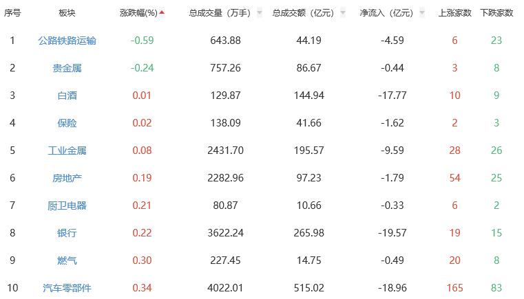 A股市场板块涨跌幅排行