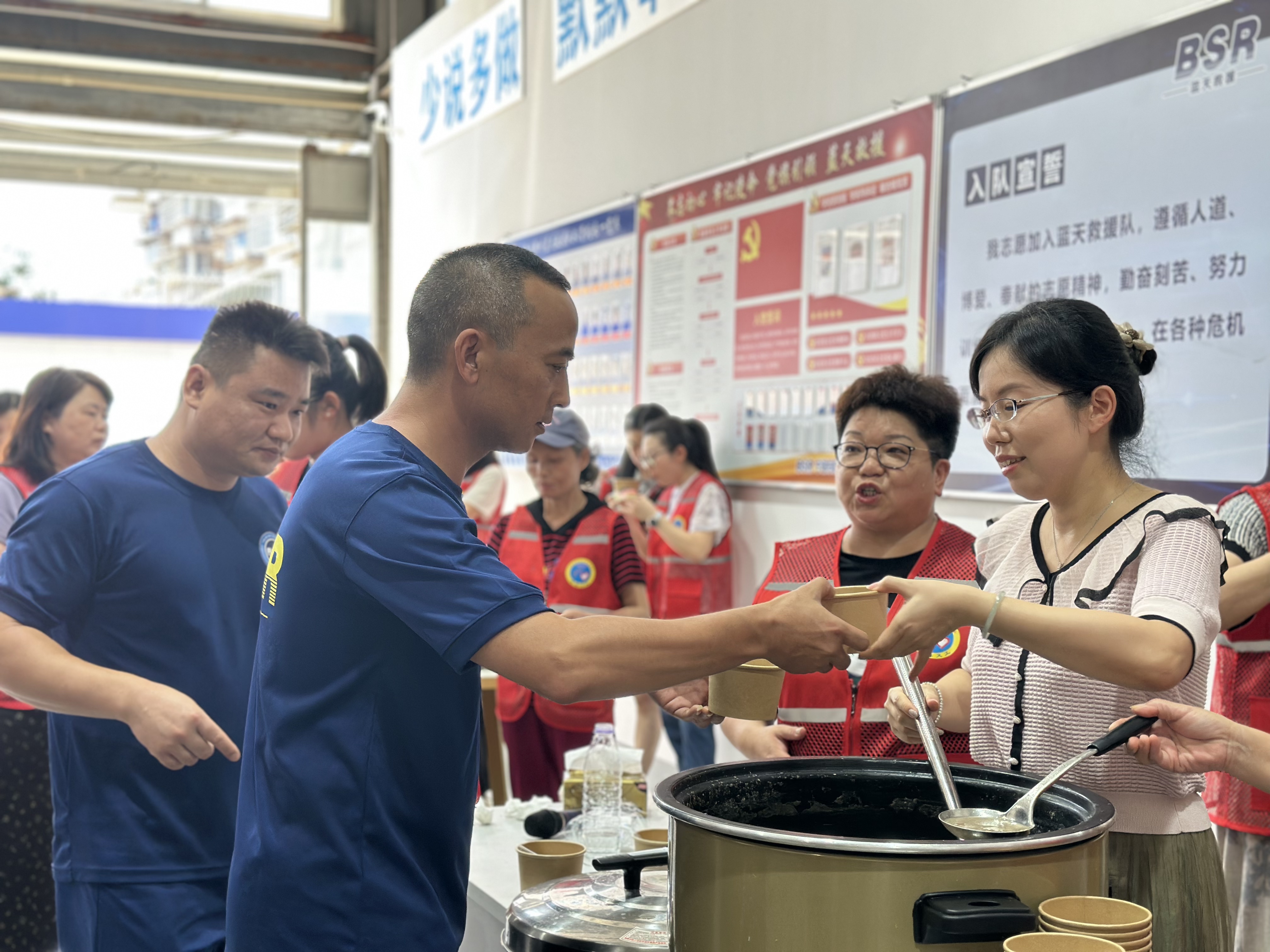 “来,尝尝我们亲手熬的绿豆汤,解暑又解渴!”义工王明芳拿着大汤勺招呼着救援队员们,“微光”慈善义工大队部分队员的孩子也以“小义工”的身份,为救援队的叔叔阿姨们端上一碗碗冰爽解暑的绿豆汤。队员们接过绿豆汤,脸上露出欣慰的笑容:“这碗绿豆汤喝在嘴里,甜在心里,感觉再苦再累也值了。”