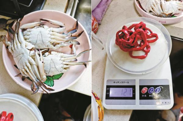 近日,网友“家在江东”通过宁波民生e点通群众留言板发帖反映,鄞州区行知实验小学对面菜市场的海鲜摊位,有售卖绑着红绳的梭子蟹。他买了0.65公斤的梭子蟹,回家一称,绳子就重达0.12公斤,绳重占比高达18.46%。