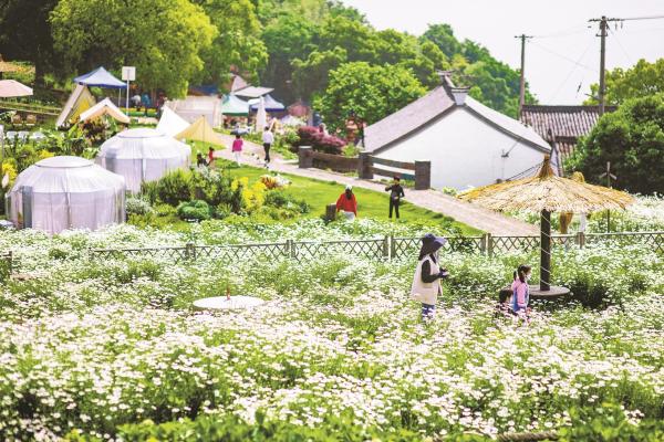 对村庄进行了整体设计,打响“立面改造战”“环境整治战”“污水治理战”“道路改扩战”;串起保国寺、鞍山、荪湖沿线10个网红点,打造乡野Countrywalk文明乡风带……近年来,鞍山村创新开展“艺术乡建”工作,赓续乡村文脉,美化乡村环境,激活乡村资源,让自然生态和人文经济相互赋能、同频共振。