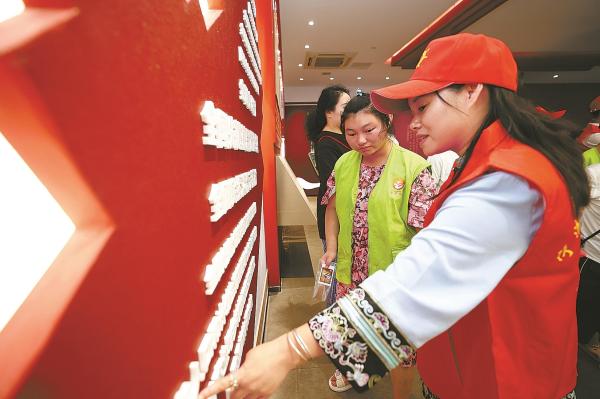 图为残疾人家庭参观村史馆。(徐能 摄)