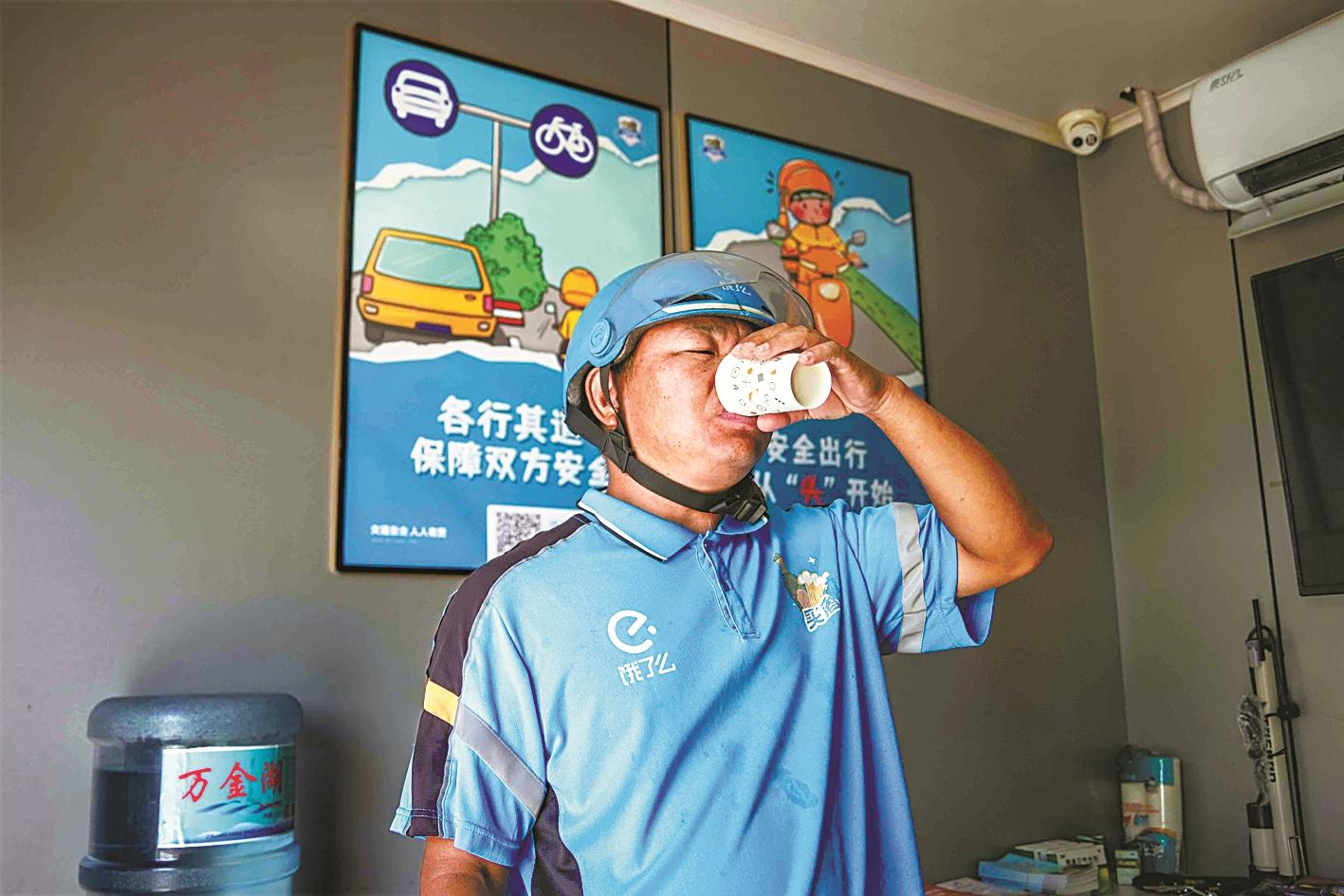 昨日,记者走进位于中山西路与环城西路交叉口的“外卖骑手驿站”,看到里面配备了空调、沙发座椅、饮水机等设施,让整个驿站变得尤为清凉舒适。此外,还有防暑应急药品、修理工具、安全手册等物品,让人感到安心、贴心。