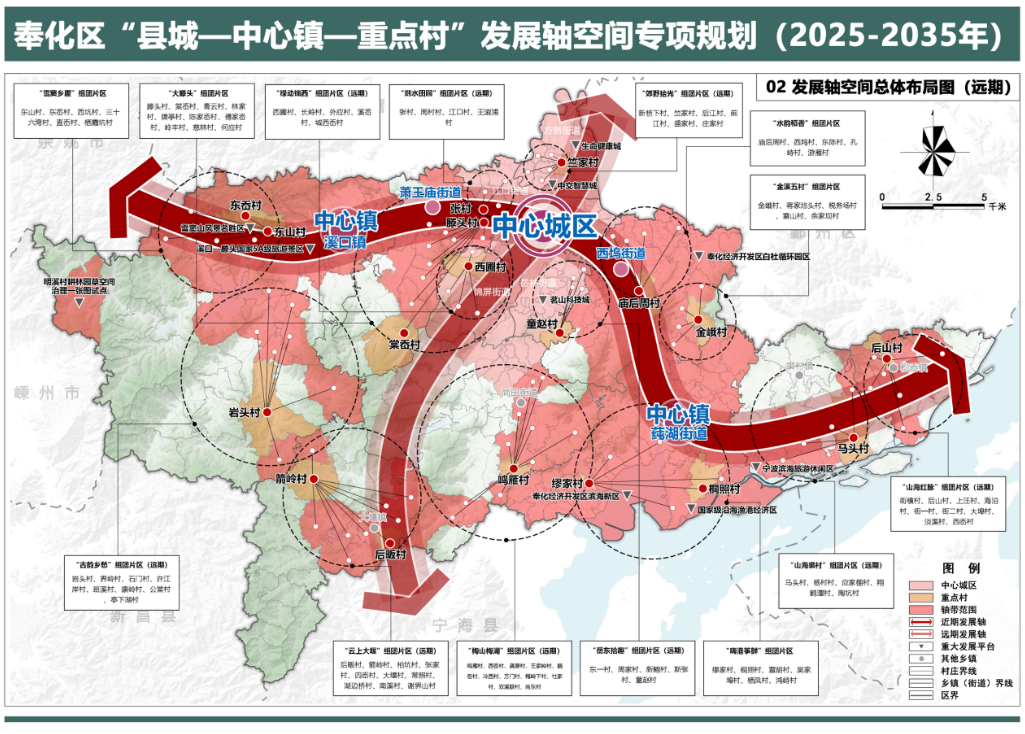 ——“名山名湾共富共美发展轴”,始于溪口镇向东至莼湖街道,串联萧王庙街道、中心城区、西坞街道,远期延伸至裘村镇和松岙镇;