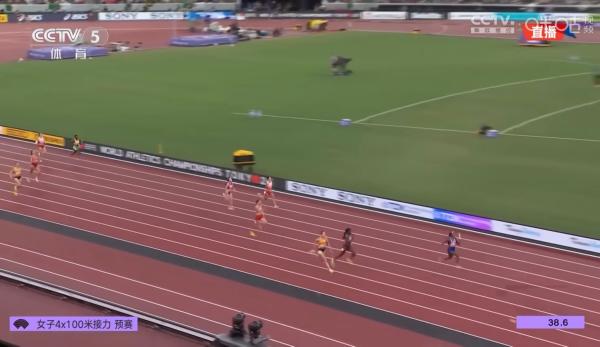 进入弯道,朱俊颖和波兰选手展开较量,而前三名的美国队、英国队和德国队渐渐拉开和后方的差距。轮到第四棒陈妤颉,她在最后100米展开“绝地反击”。不过,陈妤颉依然没能追上身前的波兰选手,中国队以小组第六的身份完成预赛。