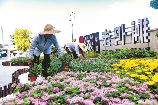 国庆节将至,节日气氛越来越浓。昨天,江北区住建局下属市政养护中心在老外滩街区内精心营造绿化景观,让市民游客在假期赏景游玩中感受喜庆吉祥的节日氛围。