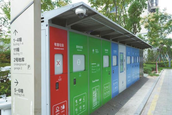鄞州区徐戎佳苑小区的全品类智能垃圾回收箱。
