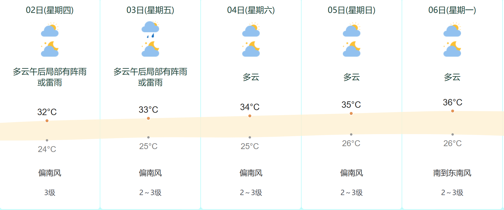 从市气象台10月1日发布的预报看,10月2日开始,我市气温将再度攀升,尤其是10月4日开始到10月7日,部分地区或将再现35-36℃的高温天,其他日子的最高气温则将稳定在30℃及以上。