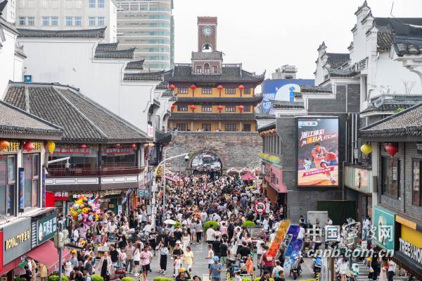 今天是国庆中秋假期首日,甬城街头游人如织,市民游客出游热情高涨。海曙区的鼓楼、天一广场、城隍庙步行街等热门目的地人头攒动,大家边逛吃边拍照打卡,现场热闹非凡,节日氛围浓厚。