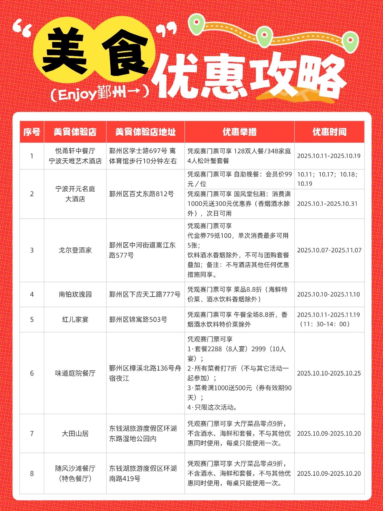 逛累了、看饿了?凭观赛门票,本地特色菜、网红餐厅都有优惠,各种美味“省着吃”“吃到撑”!