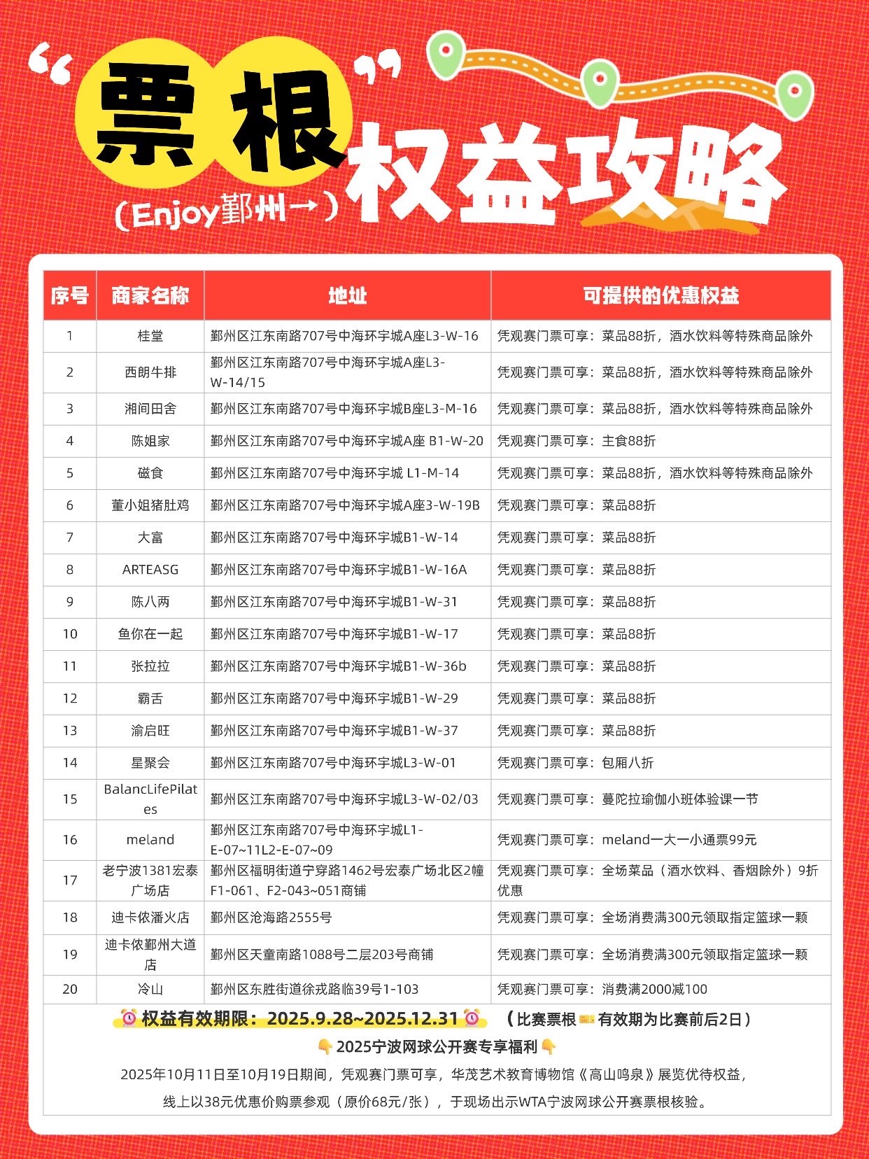 场内是运动员挥洒汗水的精彩对决,场外也藏着超多“宠粉福利”。今日,记者从市文化广电旅游局获悉,只要手持观赛门票,就能一键解锁宁波景区、酒店、美食等多重优惠,把看球的快乐直接拉满!