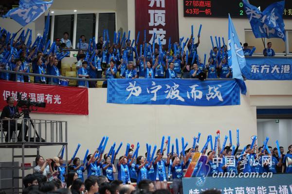 看台上,宁波球迷的助威声浪格外响亮。统一的蓝色应援服下,大家挥着队旗、敲着助威鼓。