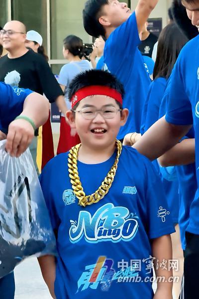 赛场内也不乏童趣与创意。看台上,不少观众“精心打扮”了一番,9岁的小球迷蒋棋宇别出心裁地装扮成“土豪”模样,可爱的造型吸引周围不少目光。“今天和妈妈一起来为宁波队加油,现场有我喜欢的球员!”他兴奋地说。