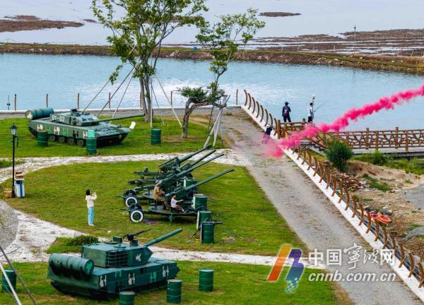 游客正在墙头镇上沙村海湾营地军事主题乐园游玩。