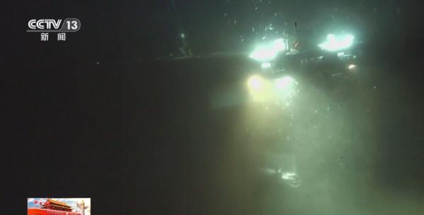 “蛟龙”号首潜副驾驶 赵晟娅:在离水面大概100米左右,我们就可以通过多波束和向上的摄像机观察母船位置,结合二次抛载控制潜水器上浮速度,在船尾上进行定点回收,母船不用根据出水位置找潜器,这是针对北极的作业模式创新。