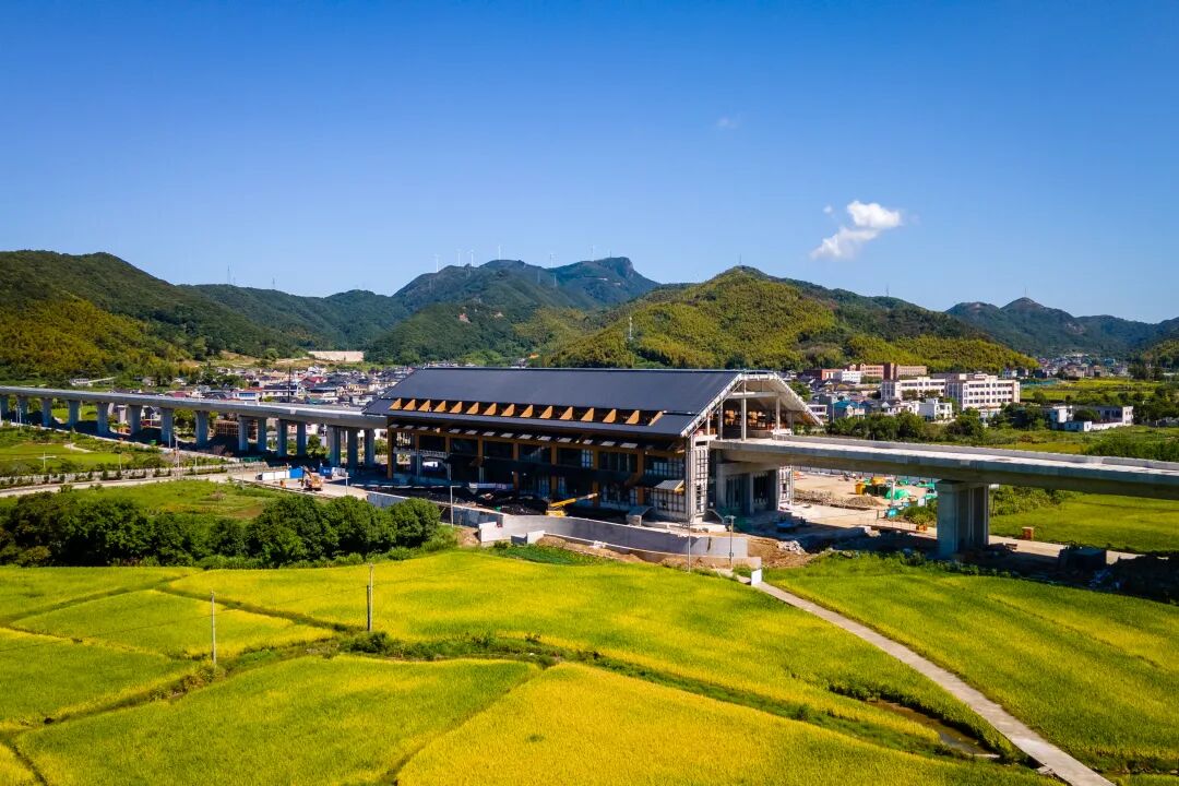 在象山线全线车站主体完工后,机电装修成为当前重点。临近象山县城的高架车站大徐站的施工已全面铺开,幕墙铝板安装、墙体砌筑、管线敷设等关键环节正同步快速推进,机电装修工程进入攻坚阶段。
