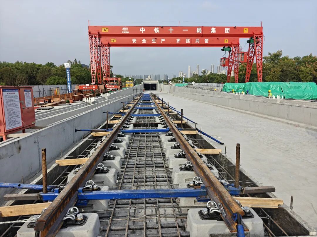 目前,慈溪线已启动铺轨施工。首个开工的铺轨基地位于新城大道站至逍林站区间,国庆期间120余名建设者抢抓施工。其他铺轨基地也在加快推进,争取早日进场施工。