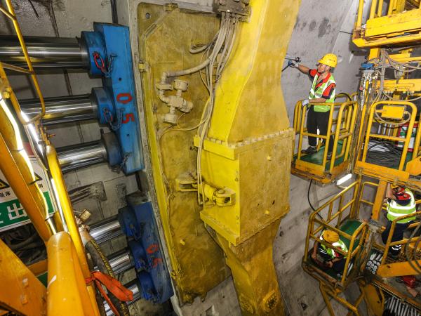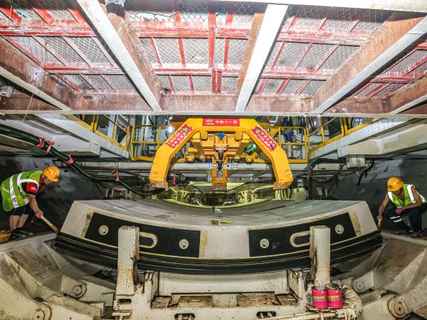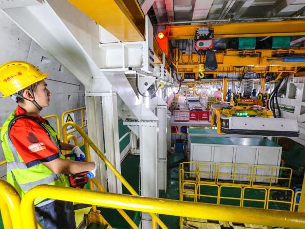 10月1日,甬舟铁路金塘海底隧道舟山侧盾构掘进施工点,中铁十一局的170余名建设者在60多米深的海底隧道内有序开展掘进、管片安装、箱涵铺设等作业,用汗水与担当奏响“建设不停步”的奋斗乐章。