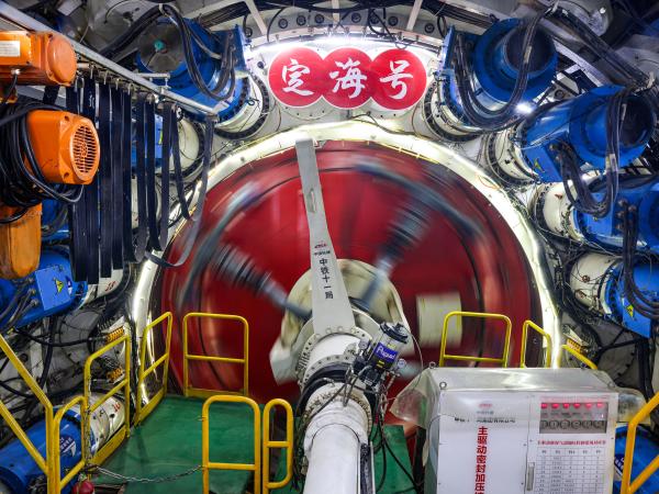 金塘海底隧道是甬舟铁路控制性工程,西起宁波市北仑区,东至舟山市金塘镇,全长16.18公里,其中采用“定海号”“甬舟号”双向盾构施工区段长11.21公里,是世界最长海底高铁隧道。