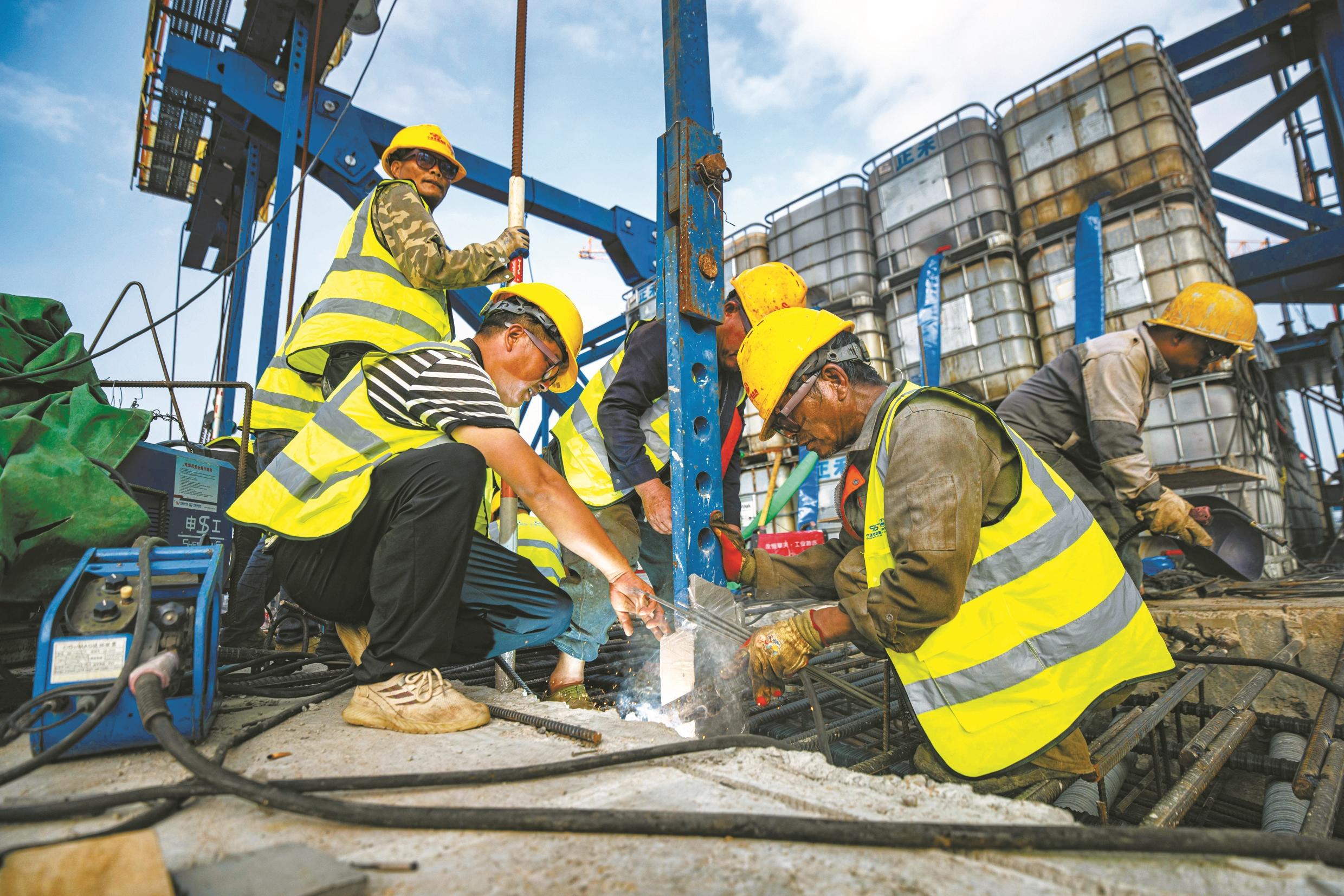工人们正在作业。(王嘉彬 摄)