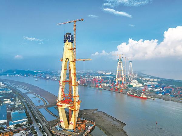 甬江特大桥主塔施工现场。(唐严 姚峰 郑佳珍 摄)