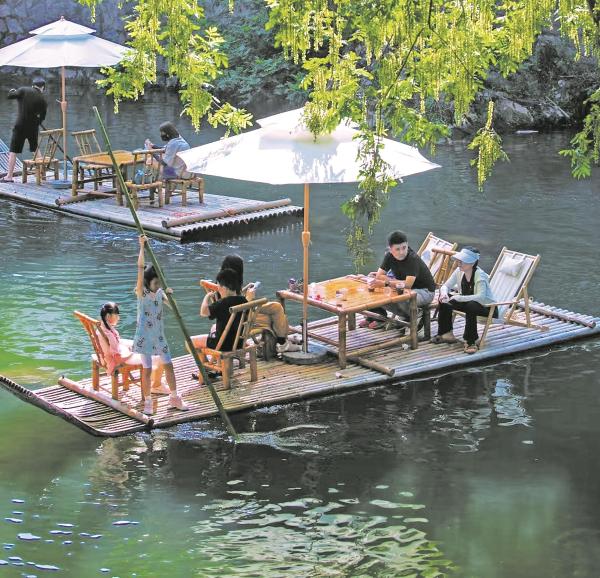 凭借这一独特的溪上休闲消费场景,连日来小院人气持续攀升,日均接待游客500余人次,仅饮品日均销售额就逾万元。