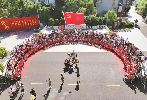 800多位村民聚在一起拍摄“全村福”。记者戚颢/摄