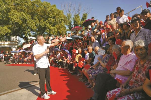 有人放弃金秋长假的外地旅行,有人专程从外地赶回老家,两三个月大的婴儿被父母抱着过来,93岁高龄的长者也在邀请下如约而至。鲁巍/摄