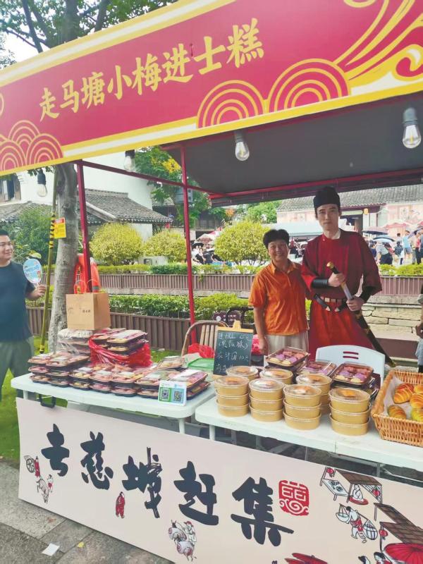 当老底子的美食与技艺被重新唤醒,这份升腾的烟火气,便成了假期里宁波最生动的模样。在鄞州区姜山镇走马塘村,村民陈梅君从小就会做糕点,2022年,在村干部的鼓励下,她结合“进士村”的人文特色,研发了走马塘“进士糕”。今年国庆假期,她把这款糕点带到了慈城市集,人气十足,“市集客流大,我的进士糕每天很早就卖光了!”